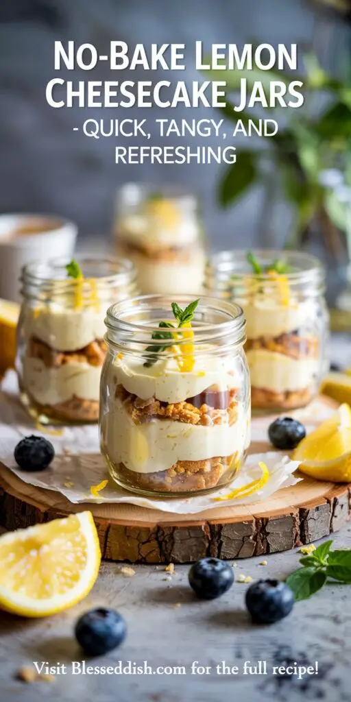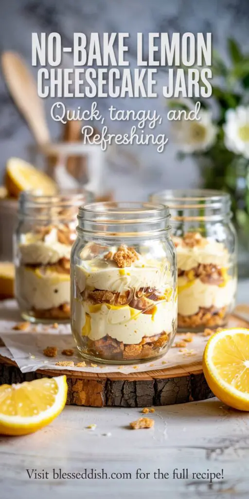 No-Bake Lemon Cheesecake Jars are the ultimate blend of convenience and elegance—combining a crisp, buttery crust with a velvety, tangy filling, all in a cute, single-serve package. With minimal hands-on time and no oven heat, you can whip up a crowd-pleasing dessert that’s as delightful to look at as it is to eat. Give these jars a try for your next gathering, share your favorite garnish combos in the comments, and subscribe for more quick, flavor-packed recipes that simplify delicious entertaining!