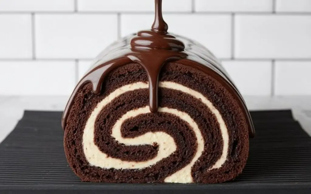 - Make Sauce and Serve: Just before serving, melt the dark chocolate, butter, brown sugar, and heavy cream in a small saucepan over low heat, stirring until smooth. Let cool slightly. Unwrap the chilled Swiss roll, place on a platter, and pour the chocolate sauce over the top.