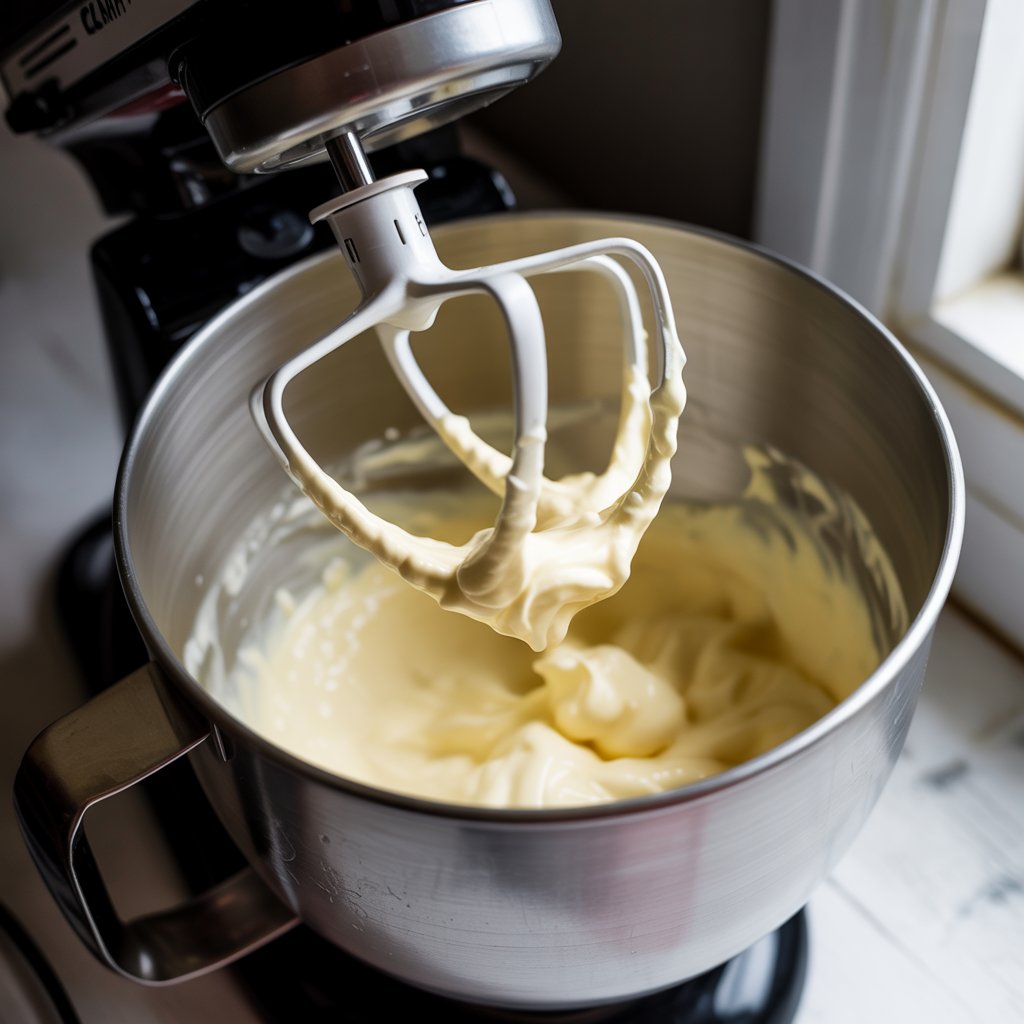- Make the Chantilly Cream: While the cake cools, whip the cold heavy cream, sifted powdered sugar, and vanilla paste until soft peaks form. Add the cold mascarpone and continue to beat until thick and stiff.
