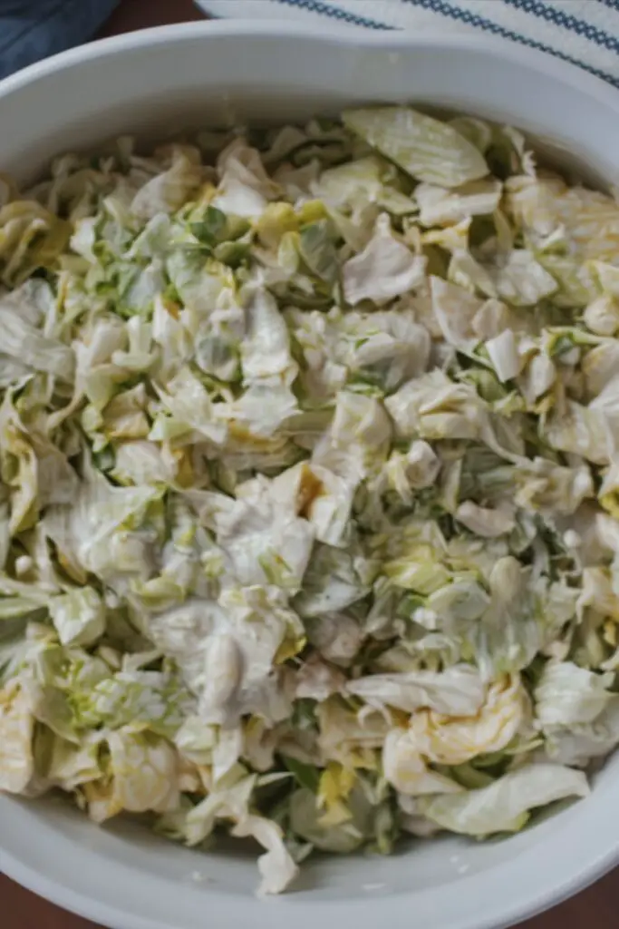 - Actionable Tip: Iceberg lettuce is classic for this recipe because of its superior crunch. Ensure it is very dry so the dressing clings to the leaves instead of sliding off.