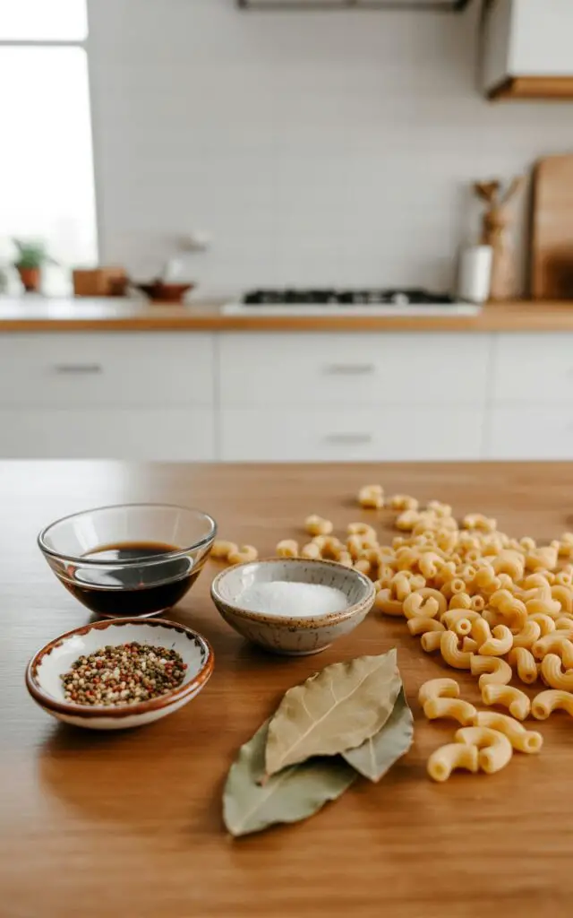 - Cook pasta in sauce: Stir in elbow macaroni. Cover and simmer 12–15 minutes, stirring occasionally, until pasta is al dente and sauce thickens. Remove bay leaves.