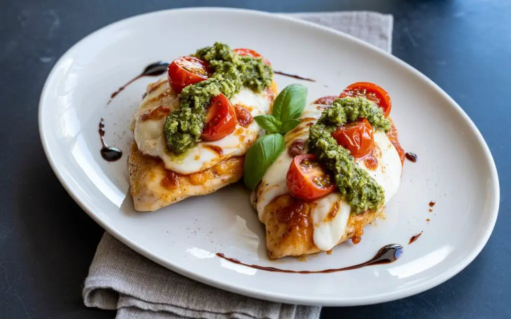 Enjoy your flavorful, fuss-free meal, and don’t forget to explore more tomato mozzarella chicken and pesto chicken skillet recipes right here!