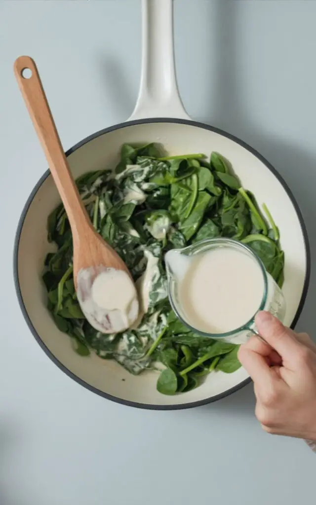 - Combine: Pour this slurry mixture into the pan with the spinach.