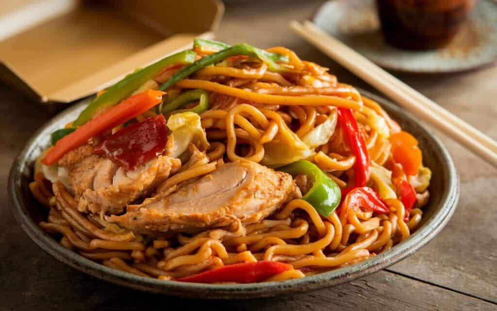 If you’re concerned about calories or sodium, preparing this Chinese recipe yourself is a game-changer. You can opt for low-sodium soy sauce, use whole-grain noodles, or fill your chow mein with more vegetables to boost nutrients and fiber.