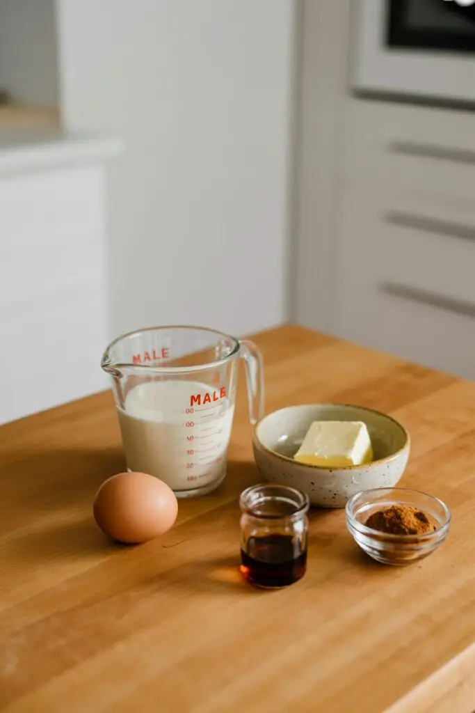 - Make Custard: In a shallow bowl, whisk egg, milk, melted butter, vanilla, and cinnamon until smooth and no streaks remain.