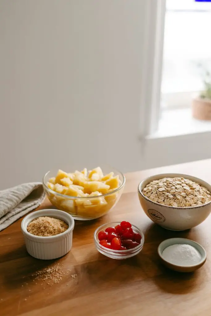To create these delightful breakfast cups, you will need a mix of pantry staples and fresh fruit. Here is exactly what you need to gather.