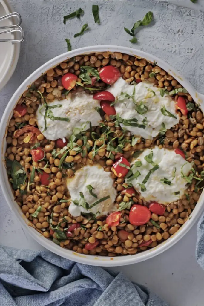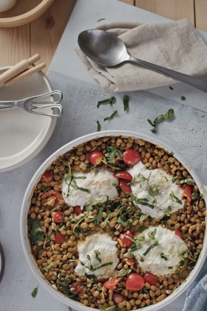 This is the ultimate one-pan meal for when you’re short on time but refuse to compromise on flavor. It’s a game-changer for a delicious, vegetarian, high-protein dinner. We’re talking savory, herb-infused lentils, bright pops of juicy cherry tomatoes, wilted spinach, and—the star of the show—dreamy, creamy dollops of ricotta cheese. It’s rustic, satisfying, and feels like a gourmet dish.