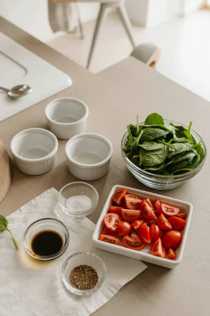 | Baby spinach leaves | 2 cups, lightly packed & coarsely chopped |