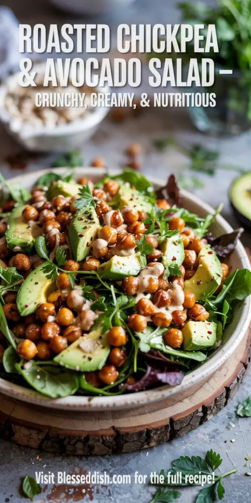 This Roasted Chickpea & Avocado Salad showcases how simple ingredients can transform into a nutrient‑rich, flavor‑packed meal that delights every palate. Perfect for quick lunches, vibrant sides, or make‑ahead meal prep, it proves that healthy eating need not be boring. Ready to toss up this crunchy‑creamy delight? Visit BlessedDish.com for more globally inspired, wholesome recipes. If you try this salad, please leave a ★★★★★ review below, snap a photo, and share on Instagram with #BlessedDish. Here’s to vibrant flavors and joyful eating!