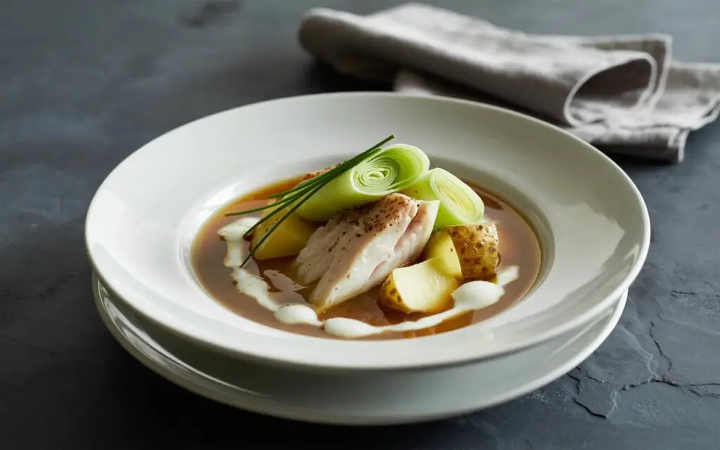 - Gently nestle smoked haddock fillets into the simmering broth. Cover and poach for 6–8 minutes until fish flakes easily.