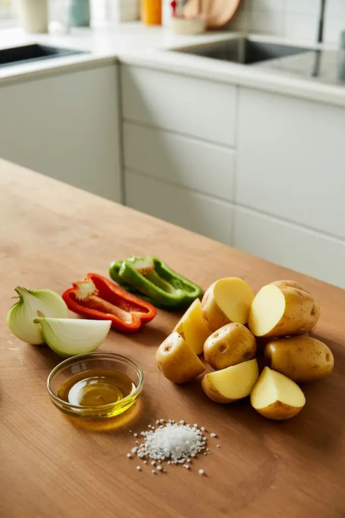 - Tip: Cut your potatoes into small, uniform ½-inch cubes. This ensures they cook through at the same speed as the peppers and onions.