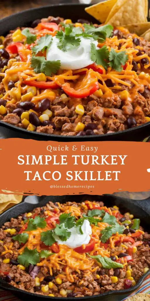 Simple Turkey Taco Skillet – All-in-One Mexican-Inspired Feast stands as a testament to how a single pan, some ground turkey, everyday veggies, and a few southwestern spices can form a bright, hearty meal in minutes. From browning the turkey to building a sauce of tomatoes, beans, and corn, each step merges convenience with robust flavor reminiscent of a taco spread. The one-skillet format keeps your kitchen streamlined, letting you focus on garnishes that elevate the dish—like shredded cheese, avocado slices, or a swirl of sour cream.