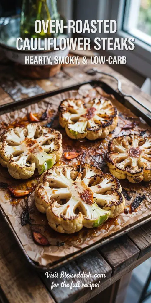 These Oven-Roasted Cauliflower Steaks showcase how a humble vegetable can transform into a show‑stopping, low‑carb centerpiece. With simple ingredients and a hot oven, you’ll achieve restaurant‑quality texture and flavor in under an hour. Ready to elevate your plant‑forward cooking? Visit BlessedDish.com for more creative, health‑focused recipes. If you try these steaks, please leave a ★★★★★ review below, share your photos on Instagram with #BlessedDish, and subscribe for weekly culinary inspiration delivered straight to your inbox. Enjoy every smoky, savory bite!