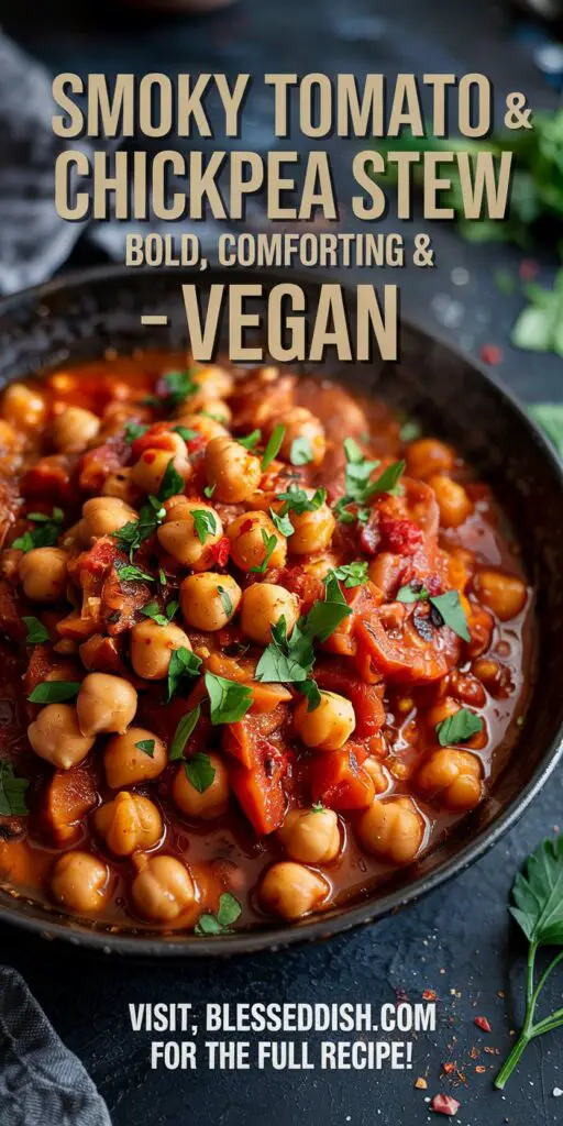 Craving fireplace vibes without chopping logs? Whip up this smoky tomato and chickpea stew, snap a steamy bowl pic, and tag @BlessedDishBlog with #SmokyStewSeason—we spotlight reader creations every Sunday supper recap. Hungry for more plant‑powered comfort blasts? Subscribe to our newsletter and download our free One‑Pot Vegan Dinners e‑book today.