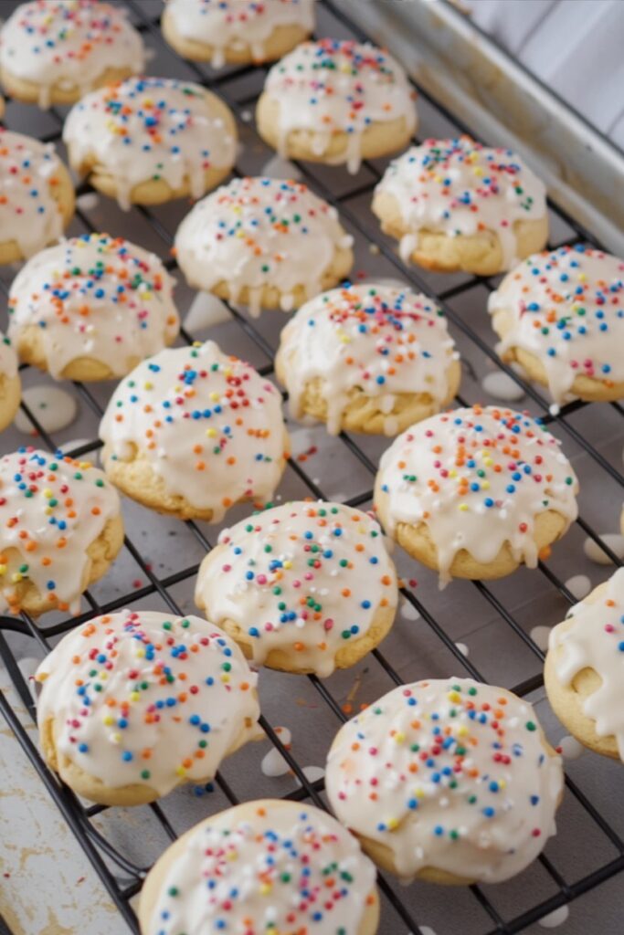 - Dip and Decorate: Dip the tops of cooled cookies into the glaze. Immediately top with sprinkles before it sets.