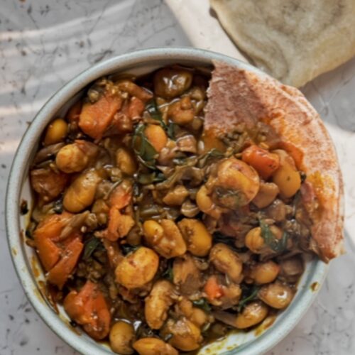 This Spicy Sweet Potato and Butter Bean Sabzi proves that vegetarian cooking doesn’t have to be complicated to be incredibly satisfying. The combination of sweet, spicy, and tangy flavors, wrapped up in a creamy, hearty texture, makes it a winner for any night of the week. Plus, it’s all made in one pot, meaning less washing up for you!