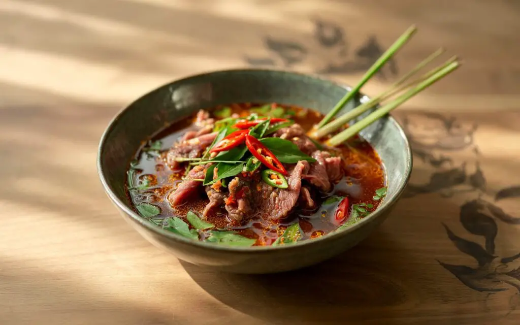 Inspired by my travels throughout Thailand and the dynamic flavors of its cuisine, Spicy Thai Beef Soup reflects the perfect marriage of heat, acidity, and savory depth. The dish is a modern adaptation of traditional Thai soups, designed to balance the intensities of local spices with the rich, tender texture of beef. Drawing on the regional culinary practices of using fresh herbs, aromatic spices, and a careful balance of sweet, sour, and spicy elements, I created this recipe as a tribute to the vibrant street food culture of Thailand. This soup captures the essence of Thai cooking—a celebration of fresh ingredients and bold flavors presented in a hearty, soul-warming bowl.