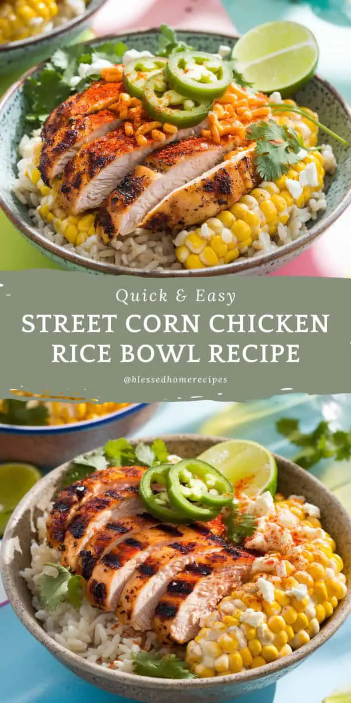 Enjoy your Street Corn Chicken Rice Bowl—a vibrant, healthy dinner that brings the bold flavors of street food right to your home!
