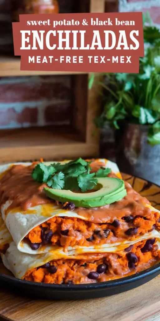 Craving the comforting appeal of enchiladas but aiming for a meat-free option that’s both substantial and flavor-packed? Consider stuffing them with sweet potato and black beans—two hearty ingredients that blend seamlessly under Tex-Mex spices, smothered in a tangy enchilada sauce. Each bite delivers the gentle sweetness of sweet potato, offset by black beans’ earthy note, with melty cheese (or a vegan alternative) bridging it all in a warm tortilla. A final drizzle of sauce or garnish of fresh toppings rounds out these Sweet Potato & Black Bean Enchiladas, an inviting dish for vegetarians, omnivores seeking a break from meat, or anyone craving the comforting essence of southwestern cuisine in a lighter, produce-forward format.