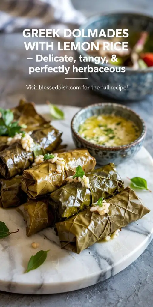 These Greek Dolmades with Lemon Rice capture the heart of Mediterranean cuisine—a blend of simple, high‑quality ingredients transformed into a timeless classic. Perfect for appetizers, mains, or mezze spreads, they bring elegance and healthy flavor to any occasion. Ready to roll? Visit BlessedDish.com for more authentic, chef‑inspired recipes. If you love these dolmades, please leave a ★★★★★ review, snap a photo and share on Instagram with #BlessedDish, and subscribe for weekly culinary inspiration straight to your inbox. Kali orexi! (Enjoy your meal!)