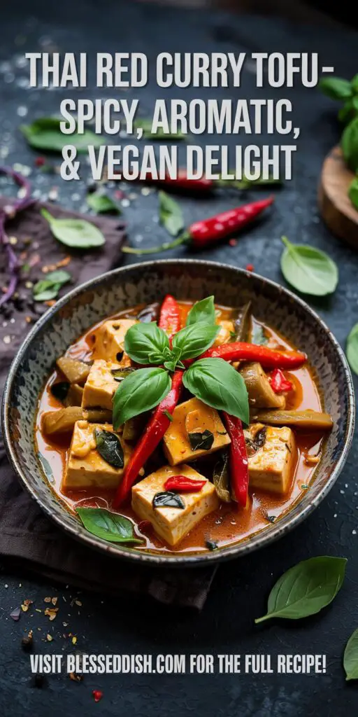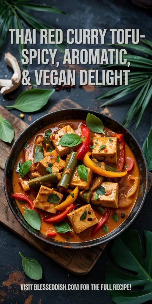 This easy yet authentic Thai Red Curry Tofu recipe offers vibrant colors, bold flavors, and nourishing ingredients—perfect for busy weeknights or special meals. Ready to enjoy the spicy-sweet comfort of Thai cuisine at home? Visit BlessedDish.com for more inspired global recipes. If you loved this Thai curry, please leave a ★★★★★ review below, share your creation on Instagram using #BlessedDish, and subscribe for weekly culinary inspiration delivered straight to your inbox.