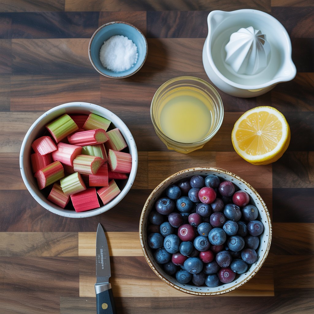 | Fresh or Frozen Blueberries | 2 cups | Their sweetness is the perfect counterpoint to the tart rhubarb. |