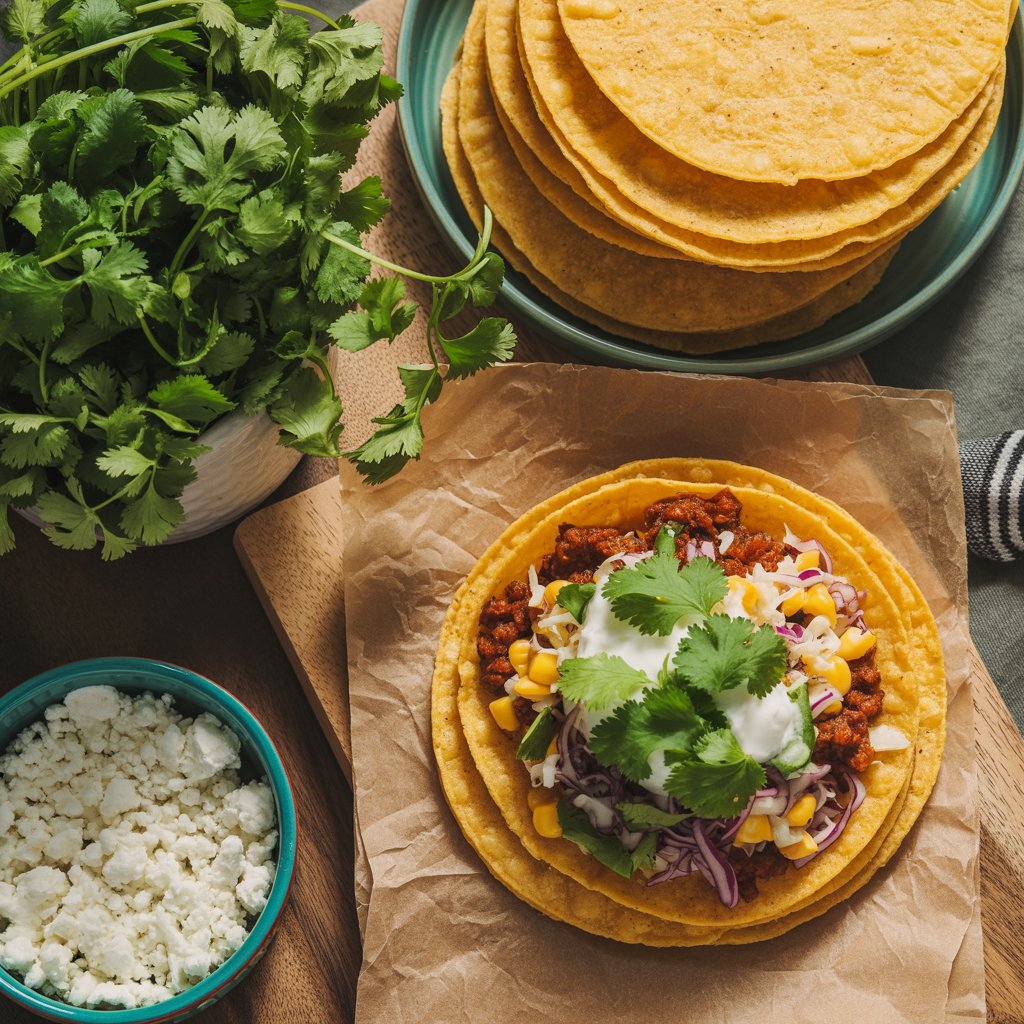 Crispy corn shells piled high with creamy black beans, spicy-sweet chorizo & charred corn, crunchy jalapeño slaw, and a drizzle of lime crema—finished with fresh cilantro and queso fresco. This weeknight-friendly tostada masterclass delivers big flavor in under 30 minutes.