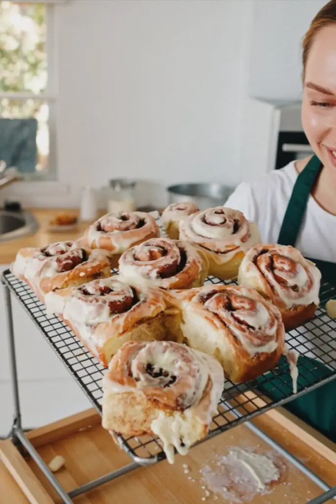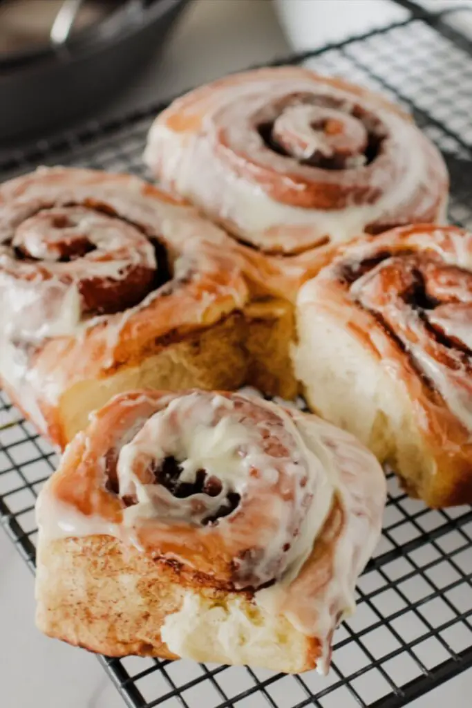 - Glaze and Serve: Turn rolls out onto a board, then flip right-side up onto a rack. Cool for 5 minutes. Spread frosting over warm rolls. Serve warm.