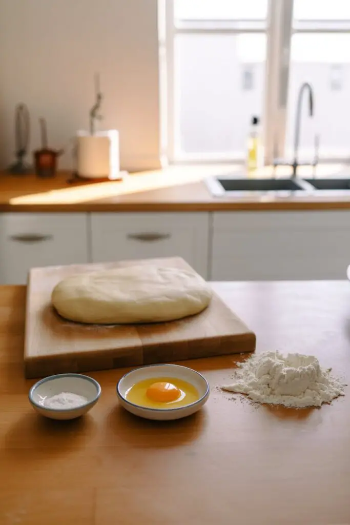 - Mix the Dough: In a large bowl, combine flour, remaining 55g sugar, and salt. Make a well in the center. Pour in the milk mixture, melted butter, and beaten egg. Mix with a wooden spoon until a shaggy dough forms, then bring together with your hands.