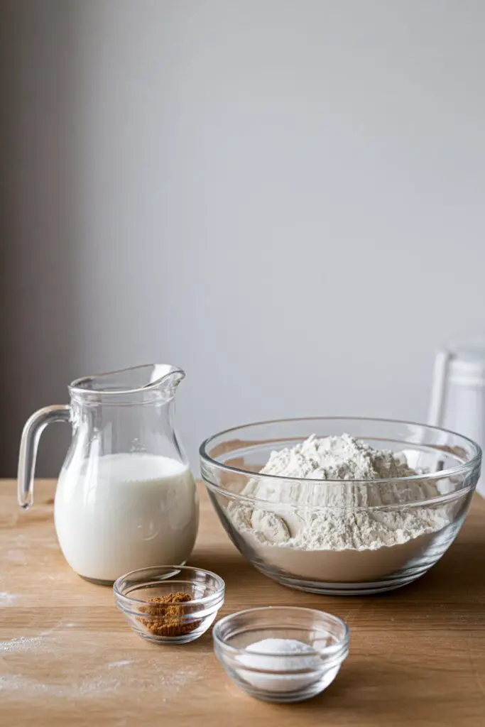 - Proof the Yeast: Pour lukewarm milk into a jug. Add yeast and a pinch of caster sugar. Stir gently and set aside for 5 minutes until frothy.