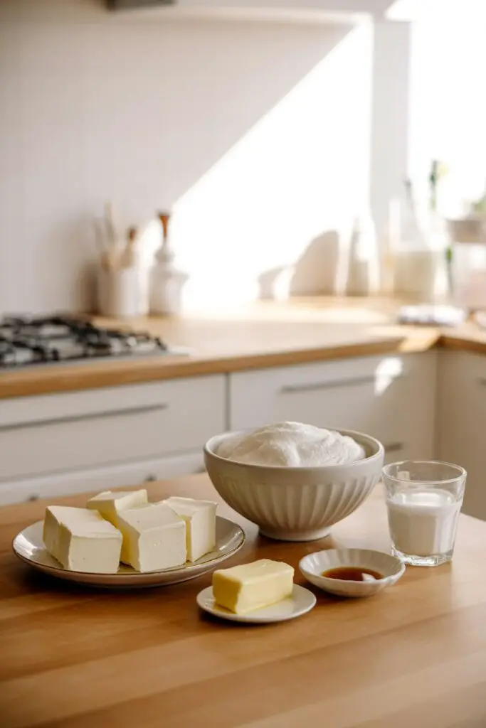 - Make Frosting: Beat cream cheese, 20g butter, and vanilla until smooth. Add icing sugar and beat until creamy. (Add milk here if you prefer a thinner glaze).