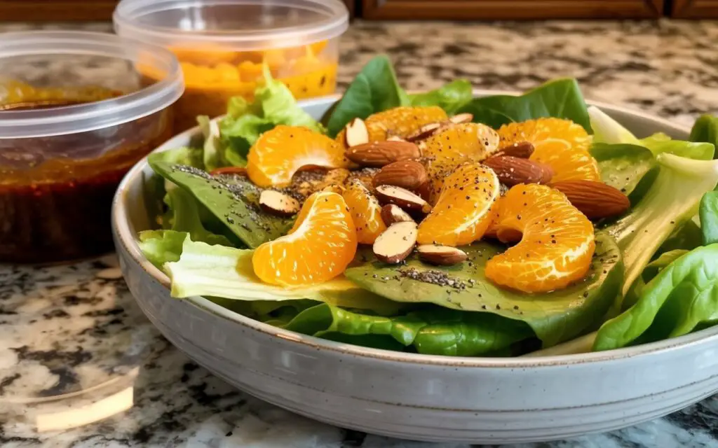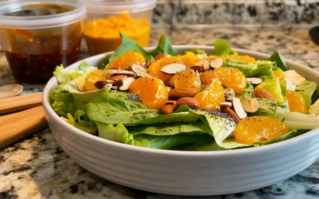 A bright, crunchy salad combining crisp Romaine and iceberg lettuces, toasted almonds, and sweet-marmalade Mandarin oranges, all tossed in a luscious poppy seed–soy dressing. Perfect as a light lunch or side for family dinners, this vibrant salad balances tangy, sweet, and savory flavors in every bite.