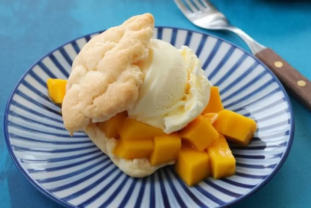 - Make it a Trifle: Roughly chop the baked shortcakes and layer them in a glass dish with the mango filling and coconut cream for a beautiful and easy mango shortcake trifle.