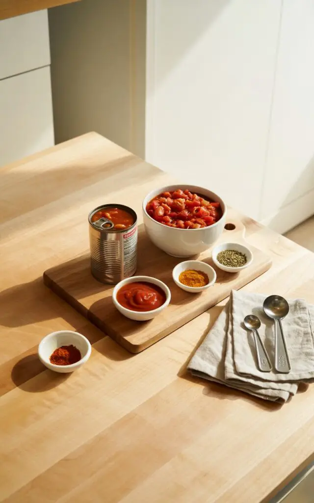 | Canned diced tomatoes (no sugar added) | 1 (15oz) can |