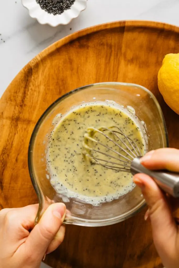 Separation is completely normal for a homemade vinaigrette without artificial stabilizers. The oil and water-based ingredients will naturally drift apart. A vigorous shake or whisk is all it takes to bring your poppy seed dressing back to its creamy state.