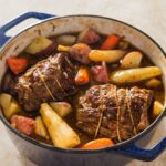 The Second Braise: Place the lid back on and return the covered pot to the oven. Cook for another 1 to 1½ hours, or until the meat and vegetables are very tender.
