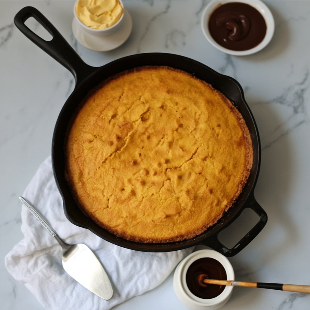 Once baked, remove the skillet from the oven and place it on a wire rack to cool for at least 10 minutes. This allows the cornbread to set, making it easier to slice. Serve warm with a generous pat of butter and a drizzle of honey.
