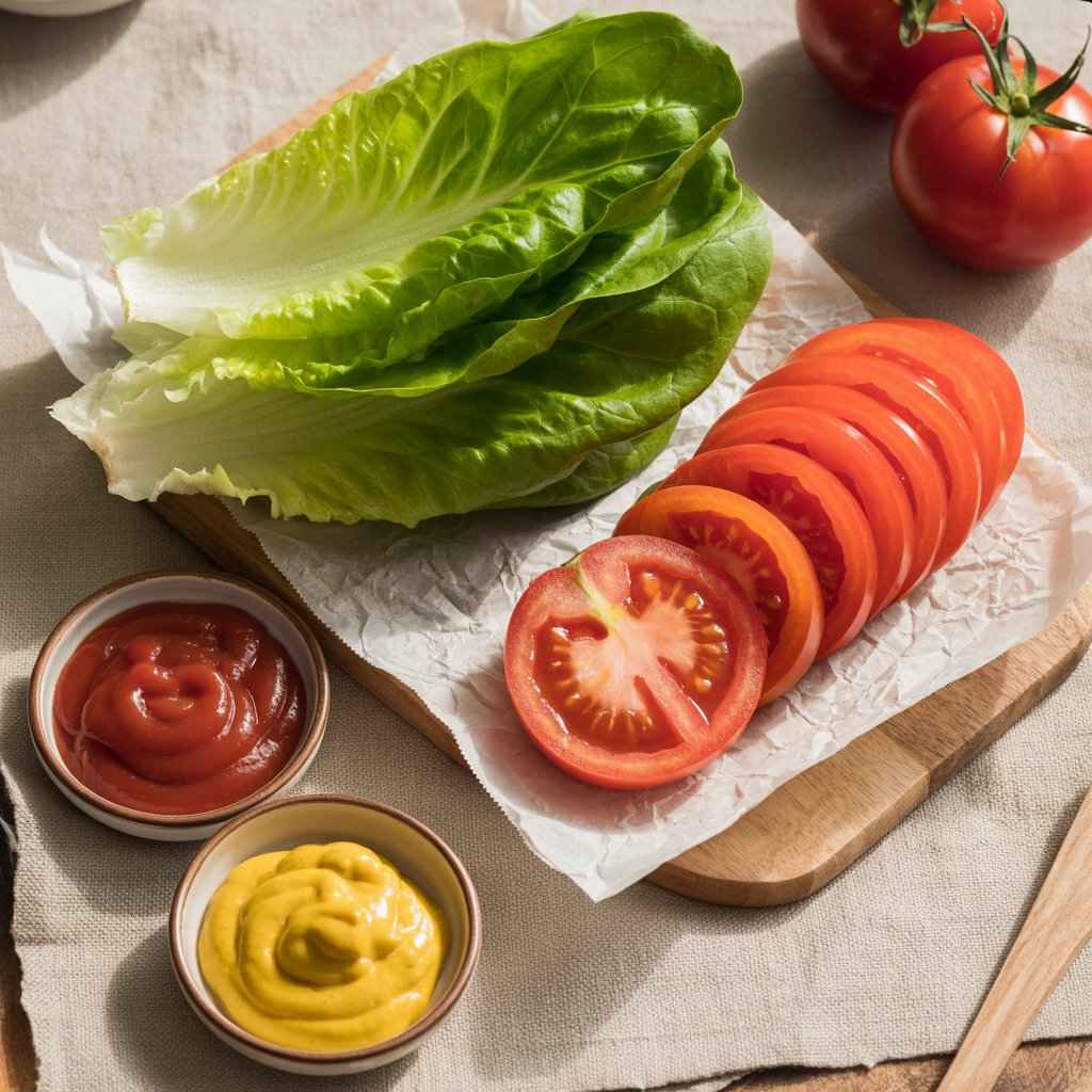 - Optional Sliced avocado mayonnaise, ketchup, mustard, lettuce, sliced tomato, raw or sautéed onions (For topping)