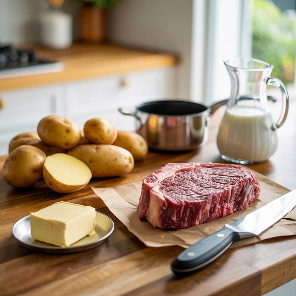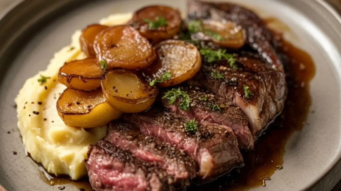 Experience restaurant-quality steak at home with a perfectly seared ribeye, bathed in garlic-thyme butter, served alongside creamy Yukon Gold mash and sweet-tangy cipollini onions. This steakhouse-style meal delivers deep, savory flavors with simple techniques—ideal for your next special dinner!