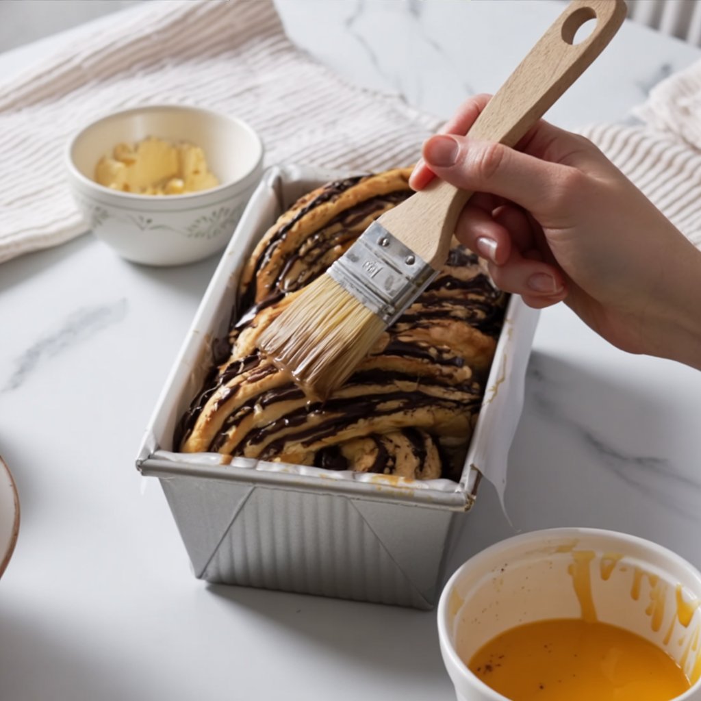 - Bake the Babka: Adjust your oven rack to the lower-middle position and preheat to (). Brush the top of the proofed babka with the egg wash. Bake for 55-60 minutes. If it browns too quickly, cover it loosely with foil.