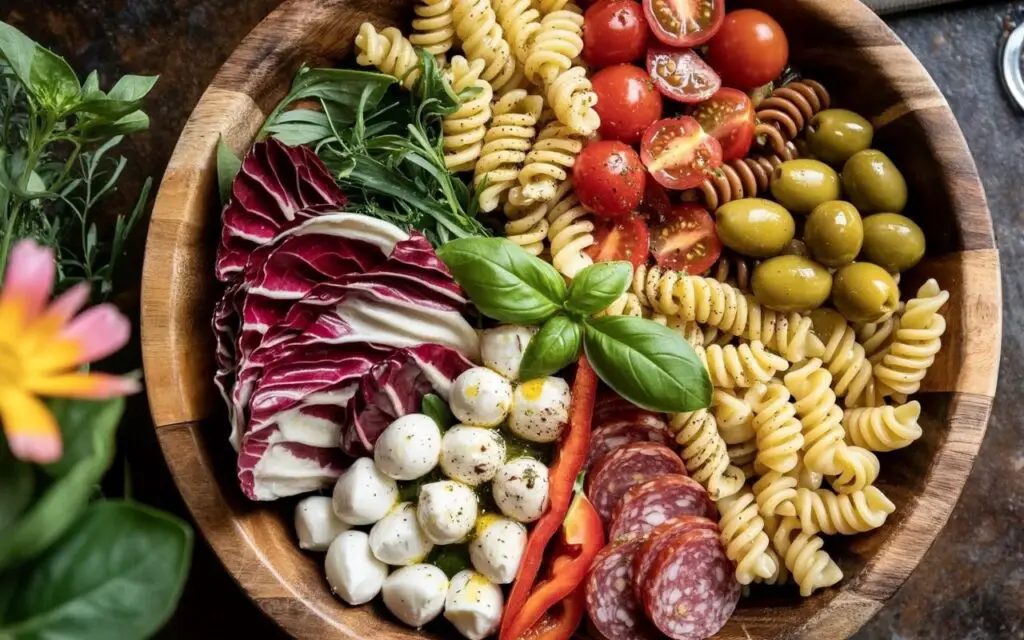 A vibrant, make-ahead pasta salad loaded with crunchy Romaine and radicchio, savory Italian meats, fresh cheeses, and a tangy-sweet herb vinaigrette. Perfect for potlucks, picnics, or casual gatherings—this colorful salad pleases every palate!