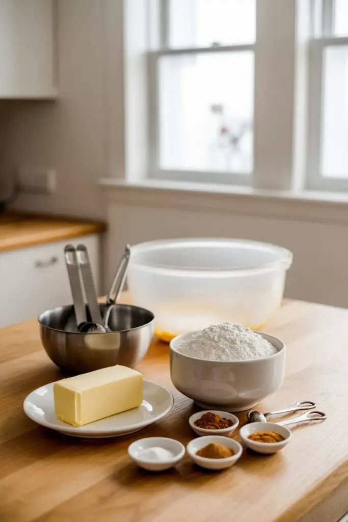 - Combine Dry Cake Ingredients: In a large bowl, whisk together the flour, cinnamon, ginger, nutmeg, cloves, baking powder, salt, and baking soda until well combined.