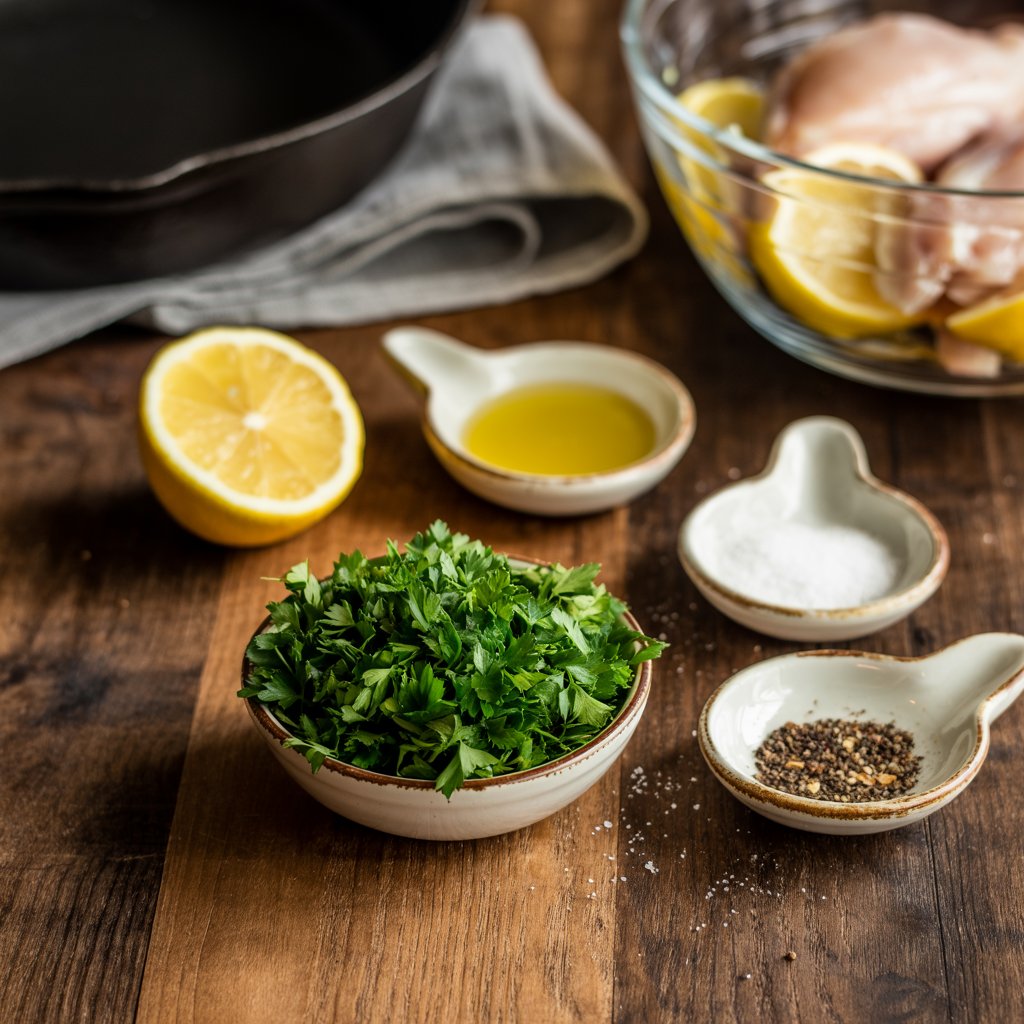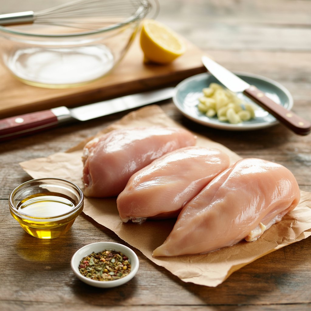 - Marinate chicken & prep potatoes: In a bowl, whisk olive oil, Italian seasoning, garlic, parsley, lemon juice, salt, and pepper. Coat chicken and marinate 10 minutes. Heat oven to 200°C (390°F).