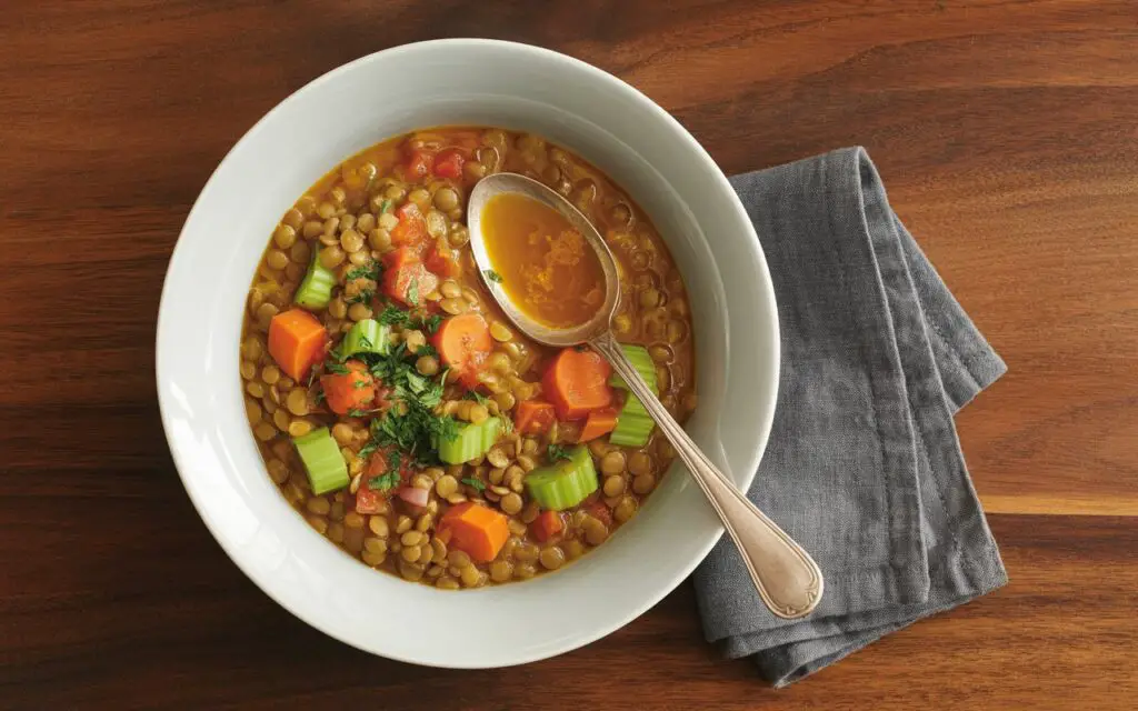 Cover partially with a lid and simmer for 50–55 minutes, stirring every 10 minutes. Check texture: lentils should be tender but intact; potatoes soft yet holding shape. Actionable tip: if the stew becomes too thick, whisk in ½ cup warm broth—this keeps consistency silky.