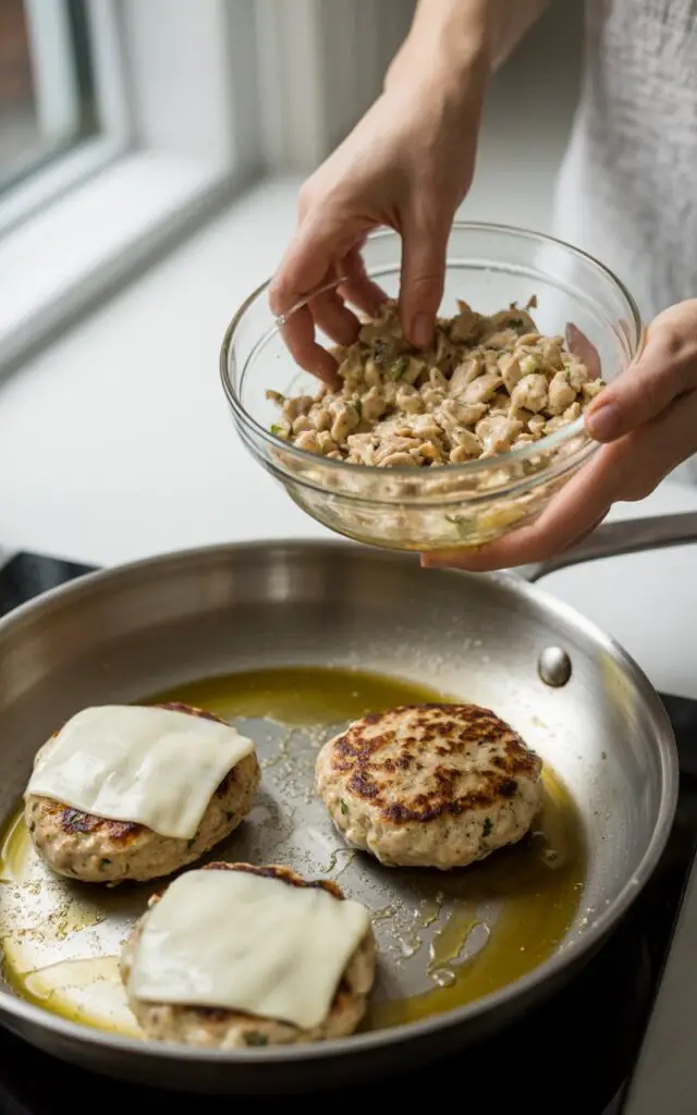 - Cook: Place the patties in the hot pan. Cook for 6–7 minutes per side. You are looking for a golden-brown crust and an internal temperature of 165°F (74°C).